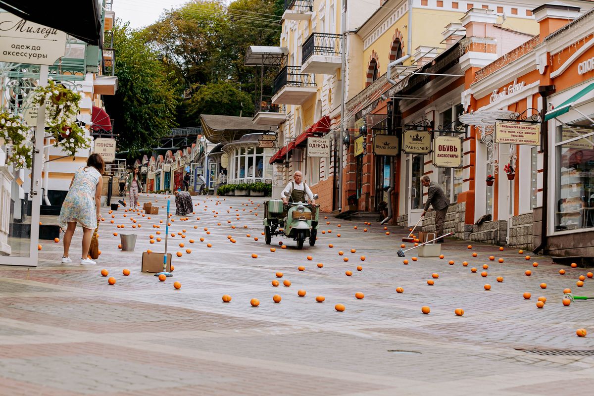 На небольшой приморский городок обрушивается дождь из апельсинов, а вместе с фруктами с неба падает неизвестный науке мохнатый непоседливый зверёк. Одержимое апельсинами животное оказывается в домике нелюдимого старика-садовника Геннадия, который из вредности решает оставить его жить у себя, так как местная богачка жаждет заполучить необычного зверя для своей избалованной внучки. Также эта коварная женщина, владелица кондитерской фабрики, пытается выведать секрет шоколада у хозяйки маленького магазинчика — дочери Геннадия, много лет обиженной на отца.
